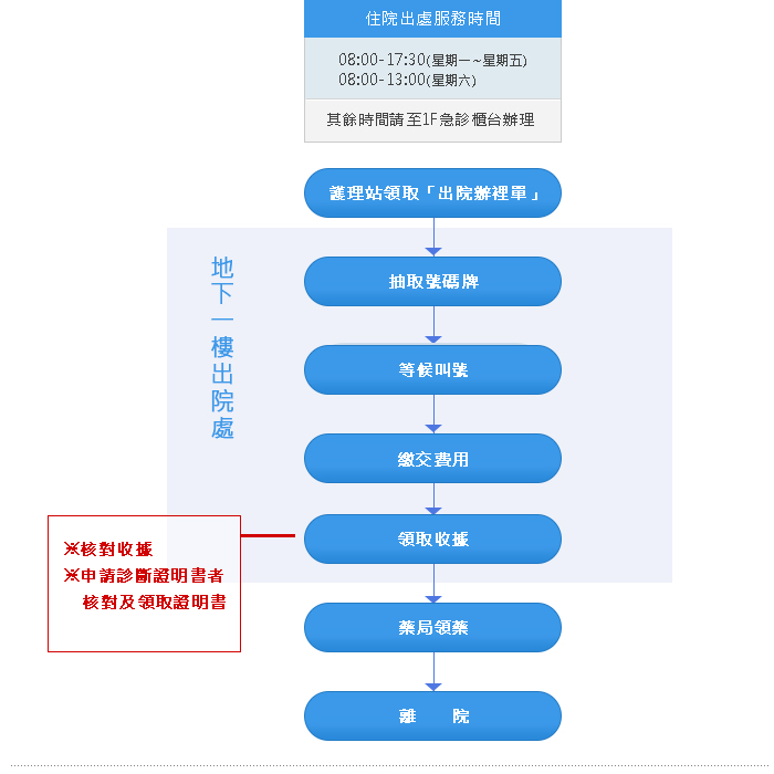 門診就醫流程 最後更新日期:2014/05/08 急診就醫流程 最後更新日期:2014/05/08 住院流程 住院須知 住院須知文件下載 我要下載 最後更新日期:2014/05/08 出院流程 最後更新日期:2014/05/08